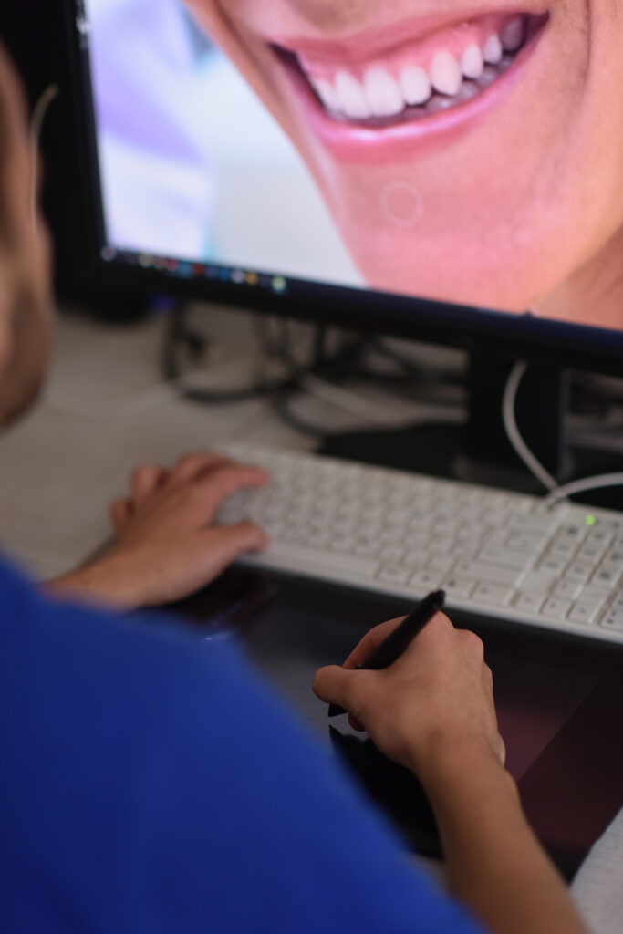Estetik diş hekimliğinde, yüz oranlarına uygun bir gülüş için diş boyutları, renk ve translusensi analizi yapıyoruz. CAD/CAM teknolojisiyle kişiye özel laminate veneer, zirkonyum kron veya full seramik restorasyonlar tasarlıyoruz.
